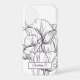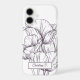 This phone case features an oversized line art drawing of tulips in dark on a dusty plum background with a personalized name. Original art from Dogwood & Thistle.