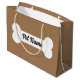 Big dog bone custom gift bag for new pet owner. Personalise with your own name or thank you text. Brown or custom background colour. Cute design with script typography. Great for animal Birthday party, celebration, shop, store, dog walker, dog groomer, pet sitter, dog lover, pet owner, dog mum etc.