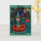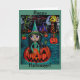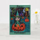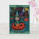 Big Eye Halloween Witch Girl Riding in a Pumpkin Card