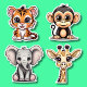 Big Eyed Kawaii Style Jungle Animal Set Waterproof