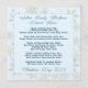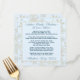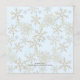 Family Christmas dinner menu template with snowflakes design. Light blue with dark blue text, customise with a title to include the family (or families) names, with date of event at the bottom of the card. The centre paragraph lists the food and drink to be served, with the name of the baker / chef next to each line. This is optional, but makes it fun. Use spaces to fill the area with text. The layered appearance of the design contains gold snowflakes as the background to the panel that holds the wording. Shown on an upgraded paper which is easy to change.