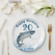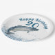Big salmon fish jumping out of splashing blue water for 20th birthday party.