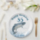 Big salmon fish jumping out of splashing blue water for 35th birthday party.