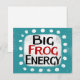 "Big Frog Energy" is a fun text design with a white accent shape surrounded by white whimsical textured dots.