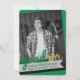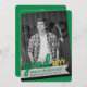 This modern graduation party invite design features a bold sketched/scribbled 'grad' script in green, tilted at a stylish angle at the bottom of the layout matched with simple typography on a black gradient overlaying a personalised photo of the graduate.