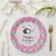 And she's off to the altar! A lady in her Derby hat against a background of hot pink, green and white diagonal blocks of stripes paper plates in 2 sizes. Fun for your bride-to-be's Derby themed bridal shower party. Use for any occasion, just change the wording. (Lady image can be deleted as can all the wording and white circle.) MATCHING items in our store.