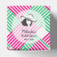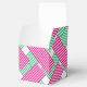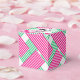 2 inch square party favour box with a lady in her Derby hat on the top with your message against a background of hot pink, green and white diagonal blocks of stripes. A fun way to thank guests for coming to your Derby themed bridal shower or change the wording and use for a birthday party or any occasion. All wording can be changed and lady image can be deleted, click CUSTOMIZE button. MATCHING items in our store.