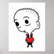 Odd looking little cartoon boy with an incredibly large head, sporting a red shirt and black shorts. Original digital cartoon art by Taylor Addams.
