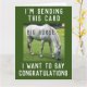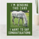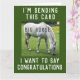 Greetings card with a funny horse message! I'm sending this card big horse (because) I want to say congratulations. Image is a photograph of a white horse grazing in a field.