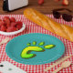 A cool illustration of a large footprint in vibrant gradient lime green with a dark grey drop shadow on a cheerful turquoise background.