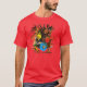 I give wanted to give this a 4 instead of a 5 because these Basic DARK T0shirts run unexpectedly SLIM or Narrow. Which is great if you do not have a potbelly, but I have a paunch. It isn't the shirt's fault that I've got a beer belly. The design and shirt itself is a quality cotton shirt. The color is more of a deep purple, but still a very pretty color. The Basic DARK T-shirts run a bit SLIMMER than the Basic Ts. The neck is a fraction narrower (or seems to be narrower) also. I'm a paunchy middle-aged woman and my neck is 12 inches (31cm) thick and the neckline fell about the same as in the photo of the man, and I had the desire to tug it a bit. So if you're a thick necked man or like loose shirts, be aware these are slimmer shirts. Once I get rid of my lockdown paunch it'll look great. The shirt washed well in cold water with no apparent bleeding. We don't have a dryer, so it hung dry. Did not shrink. Love the colors and the design. The design looks smaller on my shirt than it does on the model on-line. But still, it looks good on the shirt. The printing looks as it does on the model, just the size seems fractionally smaller. Washed garment in cold water, hung dry and design appeared unaffected.