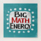 "Big Math Energy" is a fun text design with a white accent shape surrounded by white whimsical textured dots.