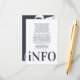 This ultra modern bold typography fantastic clean, tidy well designed minimal yet very playful bold info enclosure card is for any extra information for your events prior to the wedding ceremony, this information / details card & text placement in blue, grey and white for minimalistic style, however is customisable to other colours and is part of a unique suite and collection by Phrosne Ras Design. This would be great for those planning a fun black & white event, with this wedding enclosure card being bold and was inspired by fun-loving people who love a good party and don't mind straying from tradition.
