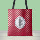 Big Monogram on Red White Swiss Dots Shoulder Tote Bag
