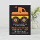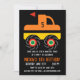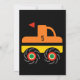 A cool big orange and yellow monster truck with your child's age on the door custom birthday party invitation template. Just fill in the party details for this personalised invitation.