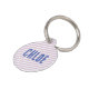 This pet ID tag features a charming seersucker pattern in delicate shades of white and light purple. The pets name is prominently displayed in a bold blue font that stands out against the soft background. The tag's design is reminiscent of a genteel, preppy aesthetic, offering a touch of sophistication for a beloved pet.