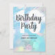 Custom birthday party invitation featuring pastel bokeh lights, clouds, and party beads with big editable birthday number and party details. Personalise this invitation for your special birthday party, and check out the matching supplies. Available for print and instant download.