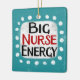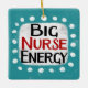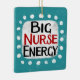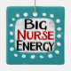 "Big Nurse Energy" is a cute text design in blue with black and red text, along with a white accent shape and white textured whimsical dots surrounding it.