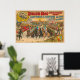 Vintage Ringling Brothers circus poster showing a big parade with men in uniforms on horseback, circa 1899.