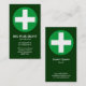 A stylish business card template with a big plus sign motif. Main company details on the front, with name and personal contact on the back.