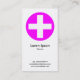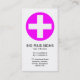A stylish business card template with a big plus sign motif. Main company details on the front, with name and personal contact on the back.