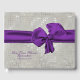 Chic Quinceañera or Sweet 16 party guest book done in a silvery sequins look, with graphics of a big purple satin looking ribbon and bow, on the front. Personalise the text fields for your special day.