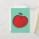 A simple drawing / illustration of a red apple. A plump juicy red apple with a thick black outline and a single green leaf on a stem.