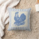 Great looking blue and white pillow is an old fashioned throwback to a simpler time. The background has the look of ticking, and there's a country farm rooster in the centre on the front. A wonderful addition to your cottage chic or Parisian country decor.