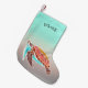 Double sided sea turtles tropical Christmas stocking design for those celebrating the holidays in a warm climate. Name will appear on both sides so stocking can be hung facing either right or left. Sea foam green with illustrated turtle design on both sides so it can be hung facing right or left.
