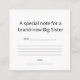 Send a special note to the new big sister with this modern enclosure card featuring a soft abstract heart and “Big Sister” text in warm neutrals. Ideal for tucking into gift bags, flower arrangements, or sibling gift boxes at baby showers and hospital visits.