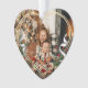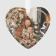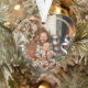 Celebrate sibling love with this heart-shaped ornament featuring a golden frame, holly, pine, and ribbon accents. Add your photo, name, and year to create a festive keepsake.