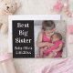 Insert photo birth announcement card featuring text that says "Best Big Sister". Great for a big brother or sister welcoming a new sibling into the family! Special message that you can personalise on the back. Trendy modern black and white design.