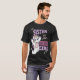 I give wanted to give this a 4 instead of a 5 because these Basic DARK T0shirts run unexpectedly SLIM or Narrow. Which is great if you do not have a potbelly, but I have a paunch. It isn't the shirt's fault that I've got a beer belly. The design and shirt itself is a quality cotton shirt. The color is more of a deep purple, but still a very pretty color. The Basic DARK T-shirts run a bit SLIMMER than the Basic Ts. The neck is a fraction narrower (or seems to be narrower) also. I'm a paunchy middle-aged woman and my neck is 12 inches (31cm) thick and the neckline fell about the same as in the photo of the man, and I had the desire to tug it a bit. So if you're a thick necked man or like loose shirts, be aware these are slimmer shirts. Once I get rid of my lockdown paunch it'll look great. The shirt washed well in cold water with no apparent bleeding. We don't have a dryer, so it hung dry. Did not shrink. Love the colors and the design. The design looks smaller on my shirt than it does on the model on-line. But still, it looks good on the shirt. The printing looks as it does on the model, just the size seems fractionally smaller. Washed garment in cold water, hung dry and design appeared unaffected.