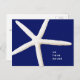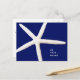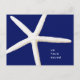 New address custom postcards in beach theme.  Single big starfish on navy blue postcards with "we / I have moved" text on the front.  Add more text to the back to notify friends and family of your move to the coast or tropics.