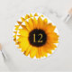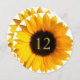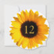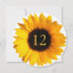 Chic table number card done in a round shape, with graphics of a big yellow sunflower covering the card, with the yellow number in the centre. Personalise one card for each table at your reception. Use a clear plastic florist card pick, to attach to your table centre pieces.