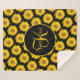 Big Sunflowers Monogram Yellow and Black Sherpa Blanket