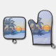 Big Sunset Hawaiian Stripe Surfers - Blue & Orange Oven Mitt & Pot Holder Set