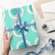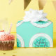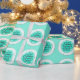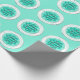 This elegant custom holiday wrapping paper features a sample a giant teal gift bow in the centre over a solid teal blue background. Two circular faux silver foil frames border the bow. A sample Merry Christmas greeting is printed at the top with a family name at the bottom. You can personalise the sticker to include your own family name or other custom text.