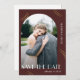 Elegant burgundy marsala one photo with big typography wedding save the date announcement. This modern announcement features an arch shaped photo, and a beautiful and simple golden wisp print. Please view this trendy wedding collection for coordinating wedding invitations, and additional chic colour options.
