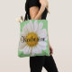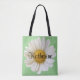 A close-up photo of a single white daisy flower with custom name in very black script on sage green background. Personalise by editing the name.