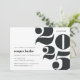 Modern graduation party invitation features "2023" in oversized lettering, with your party details aligned at the left. Invitations reverse to white confetti dots on inky off-black.