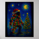 Bigfoot Christmas Sasquatch Santa Hat Starry Night Poster