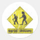 When you're in bigfoot country don't forget to look over your shoulder, Sasquatch may be crossing! This sign features a retro weathered texture and funny Big Foot xing behind hiker graphic.