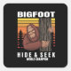 bigfoot hiding in a tree retro square sticker