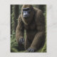 Keeping in touch postcard. Sasquatch Bigfoot gorilla Ape standing by a tree.