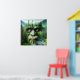 Sasquatch themed poster wall art. A cool double illustration of bigfoot with a forest, mountains and river double exposure. Pretty green and blue hues.