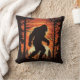 Bigfoot Sasquatch Forest Sunset Throw Pillow