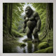 Ai art depicting Sasquatch standing in a river running through the woods.