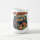 Bigfoot has a great sense of adventure, nature, and a love for the outdoors. The background features a dense forest of dark green pine trees, with some lighter green trees interspersed.