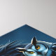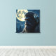 Bigfoot canvas art. A Sasquatch with golden glowing eyes with an owl on his shoulder with a Full Moon forest background in shades of blue.